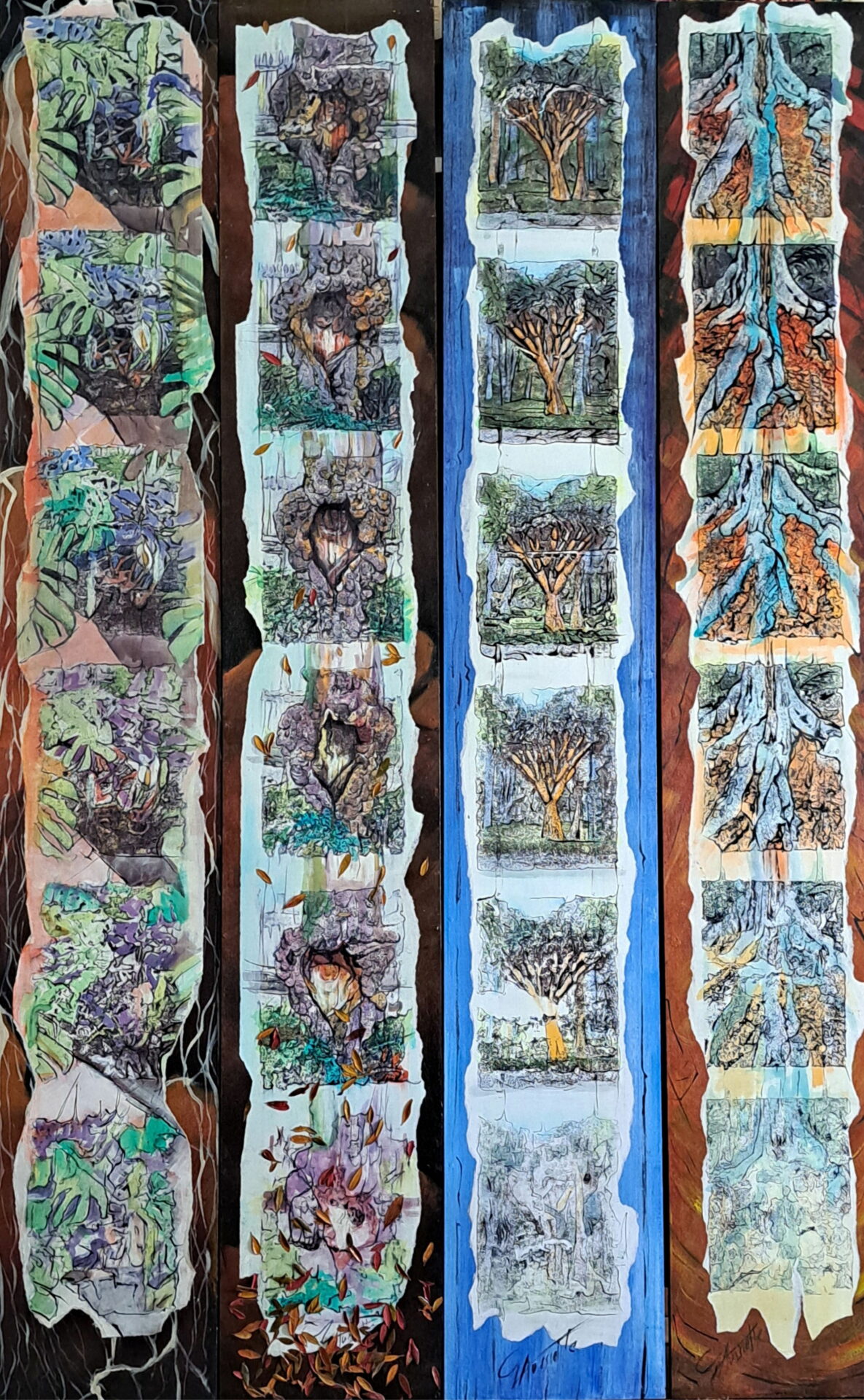 Quadriptyque – 195X120 cm – PRIX TAYLOR – Encre sur papier marouflé sur bois